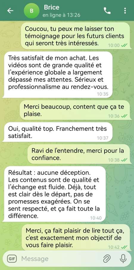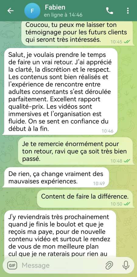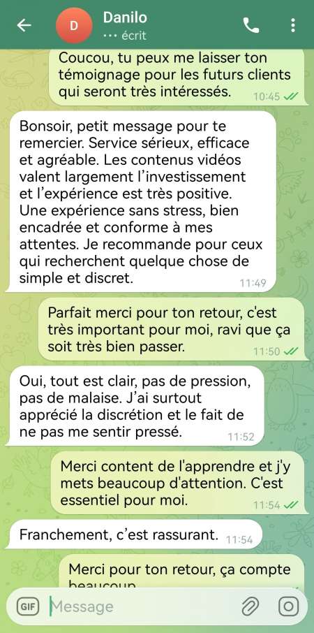 Coucou tout le monde, j'espère que vous allez tous très bien. Je suis créatrice de contenu vidéo et je propose des rdv de plan uniquement aux gens qui achète mon contenue vidéo et il pourra réserver directement son rdv avec moi. Pour plus d'informations et ceux qui sont très intéressés, n'hésitez pas à me contacter uniquement sur Telegram: princesse97 et je vous enverrai une capture de mon compte pour pouvoir voir toute mes photos.